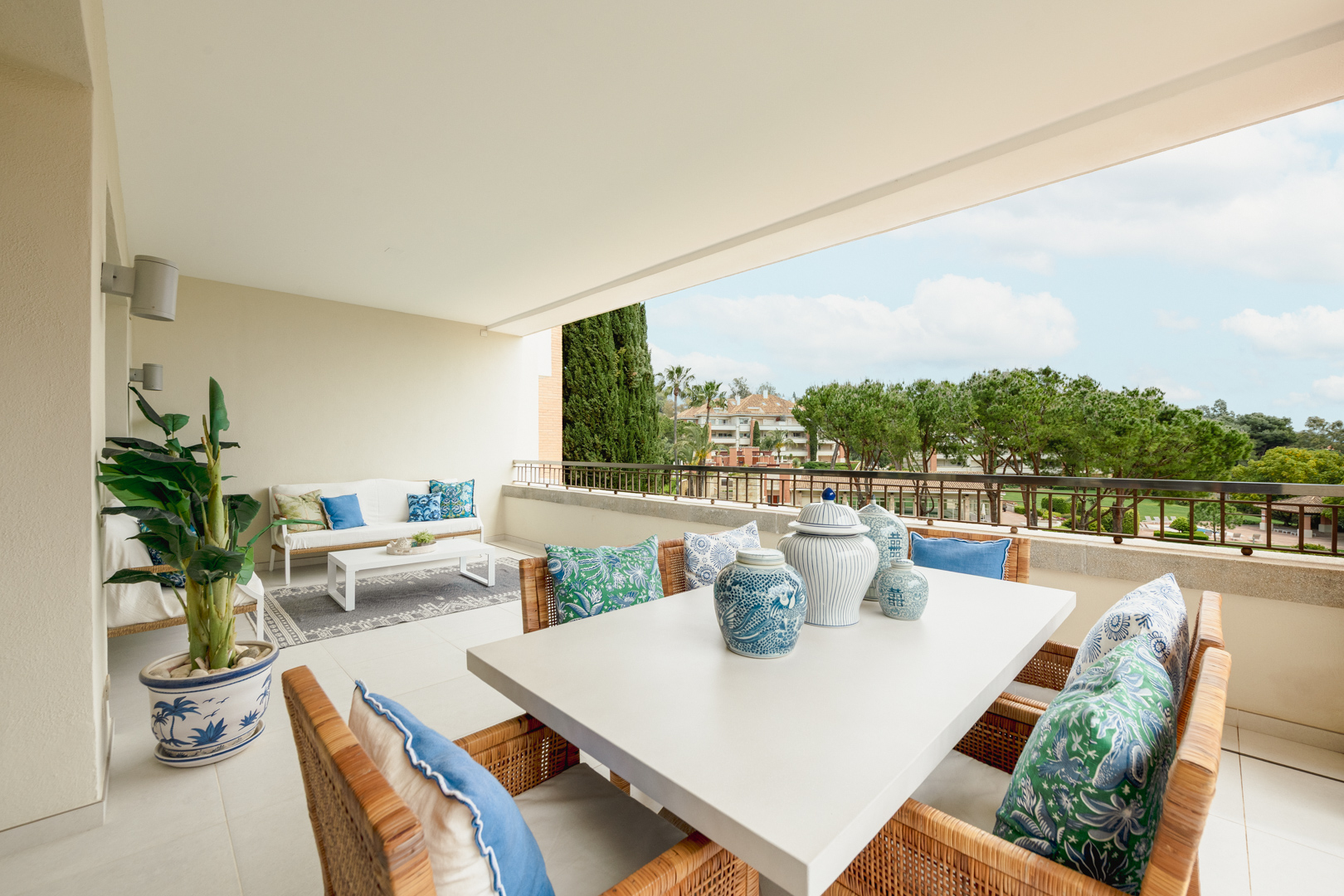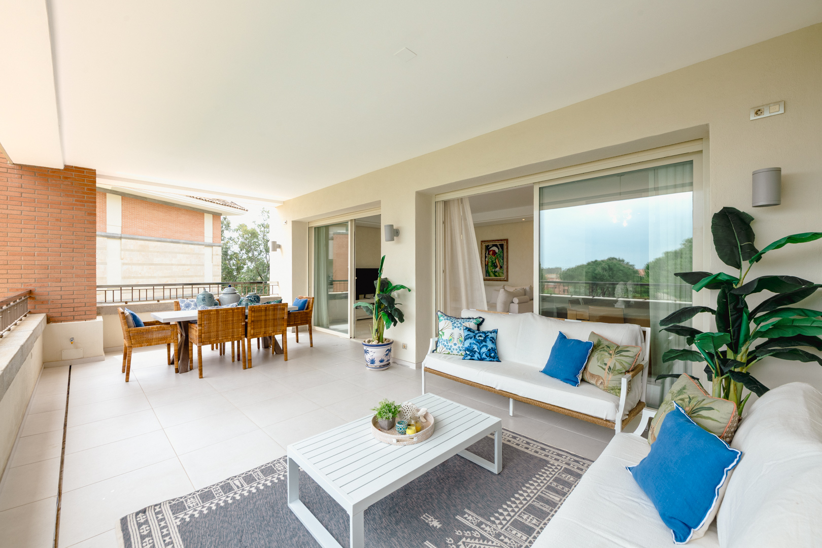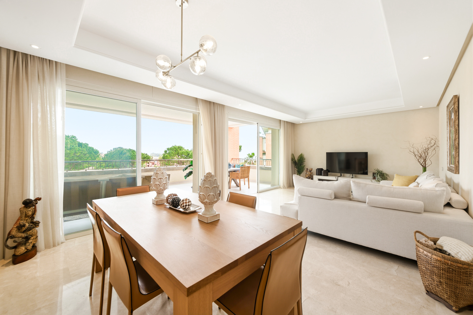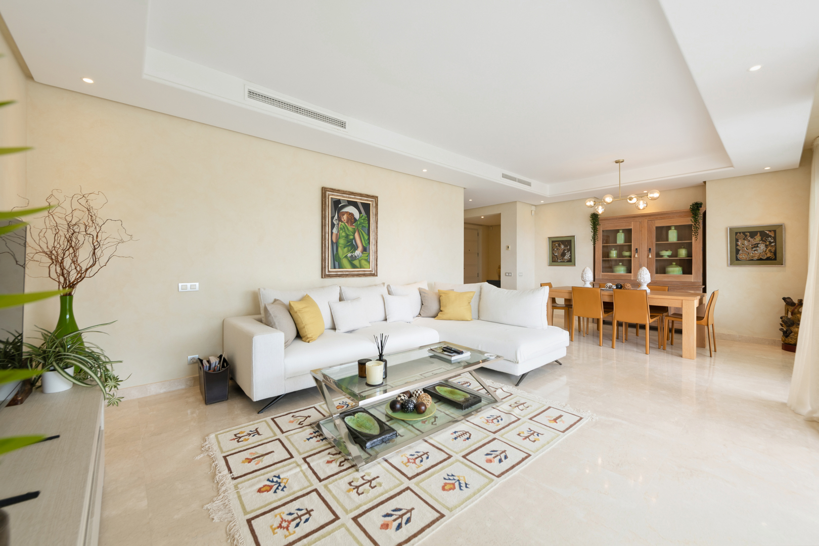 La Trinidad Golden Mile, stunning counter 3 bedroom, 4 bathroom SE facing apartment. 198 m2 + 34m2 terrace. Total 232m2. Has 24 hour gated security, indoor heated pool, gym and sauna. 7.2 hecters of land, only 116 apartments. Apartment is all original and in good order. Comes with one car space and store room.