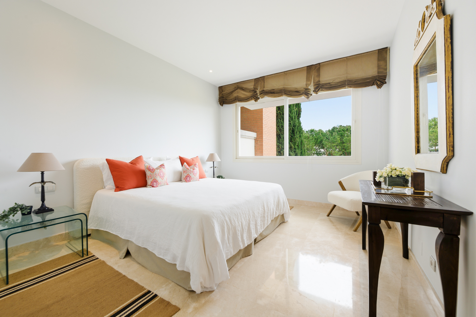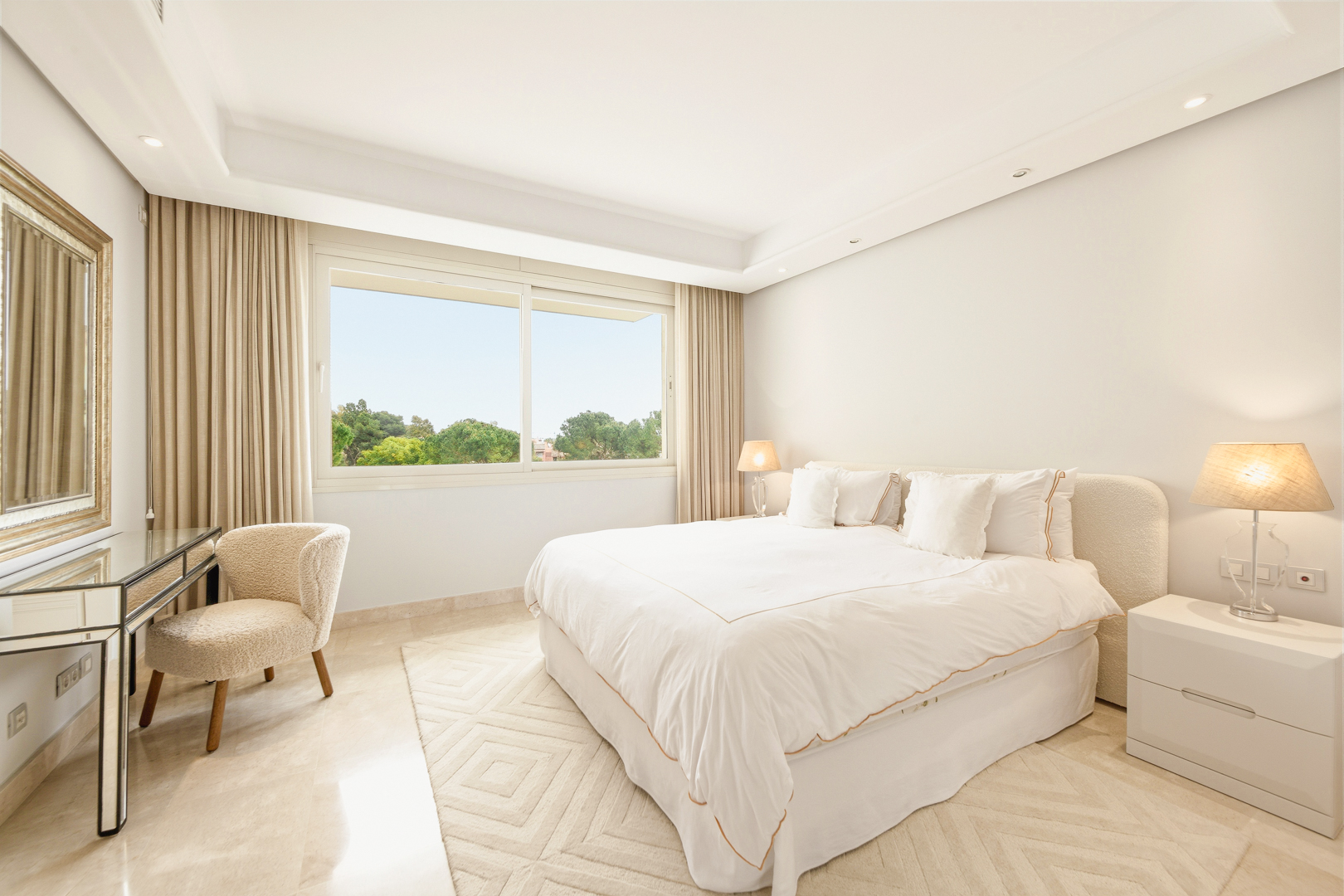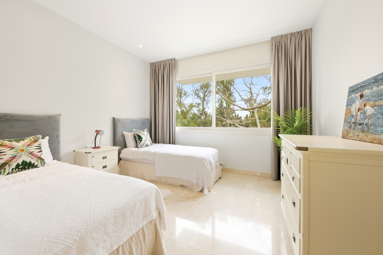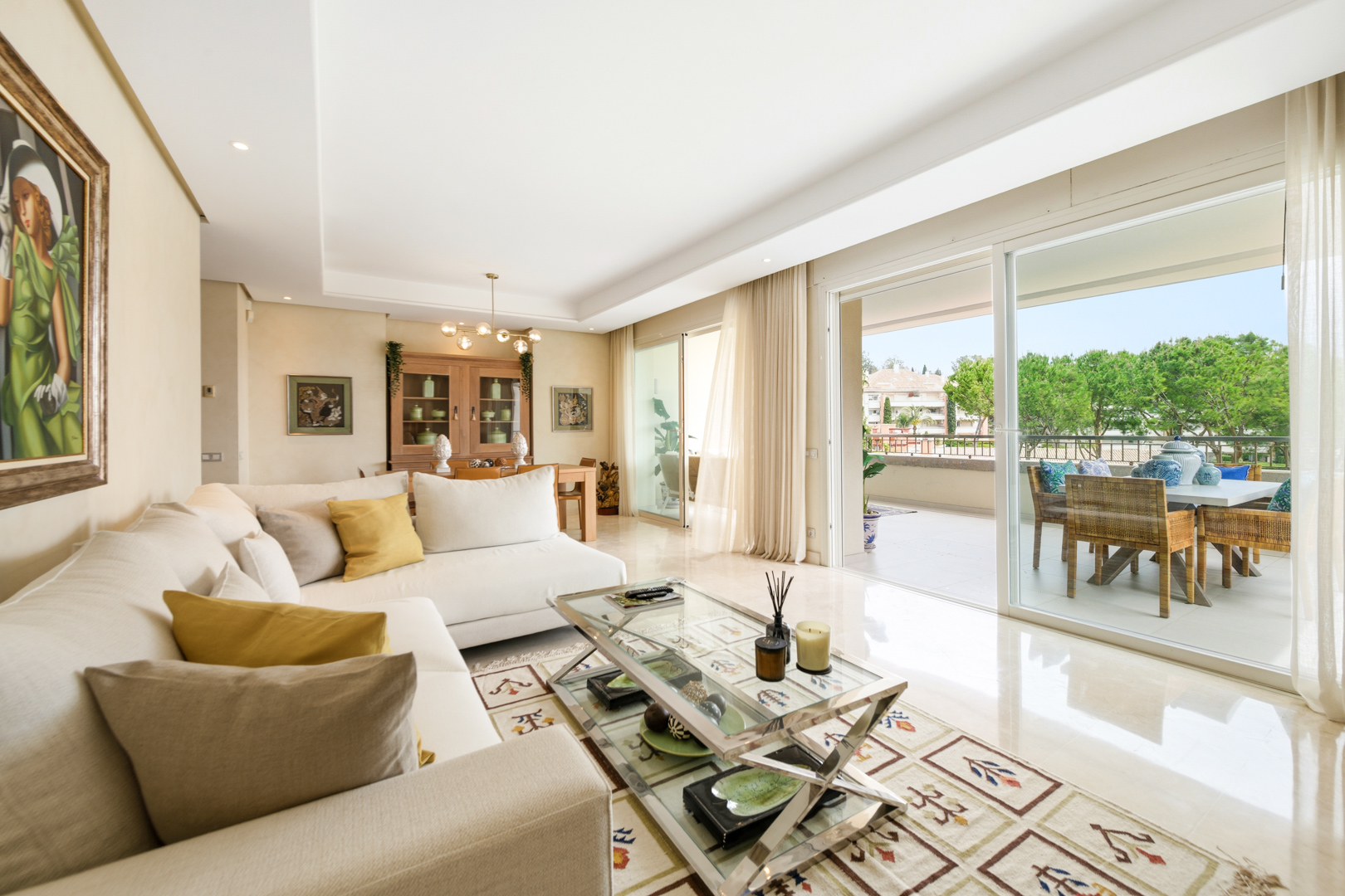 La Trinidad Golden Mile, stunning counter 3 bedroom, 4 bathroom SE facing apartment. 198 m2 + 34m2 terrace. Total 232m2. Has 24 hour gated security, indoor heated pool, gym and sauna. 7.2 hecters of land, only 116 apartments. Apartment is all original and in good order. Comes with one car space and store room.